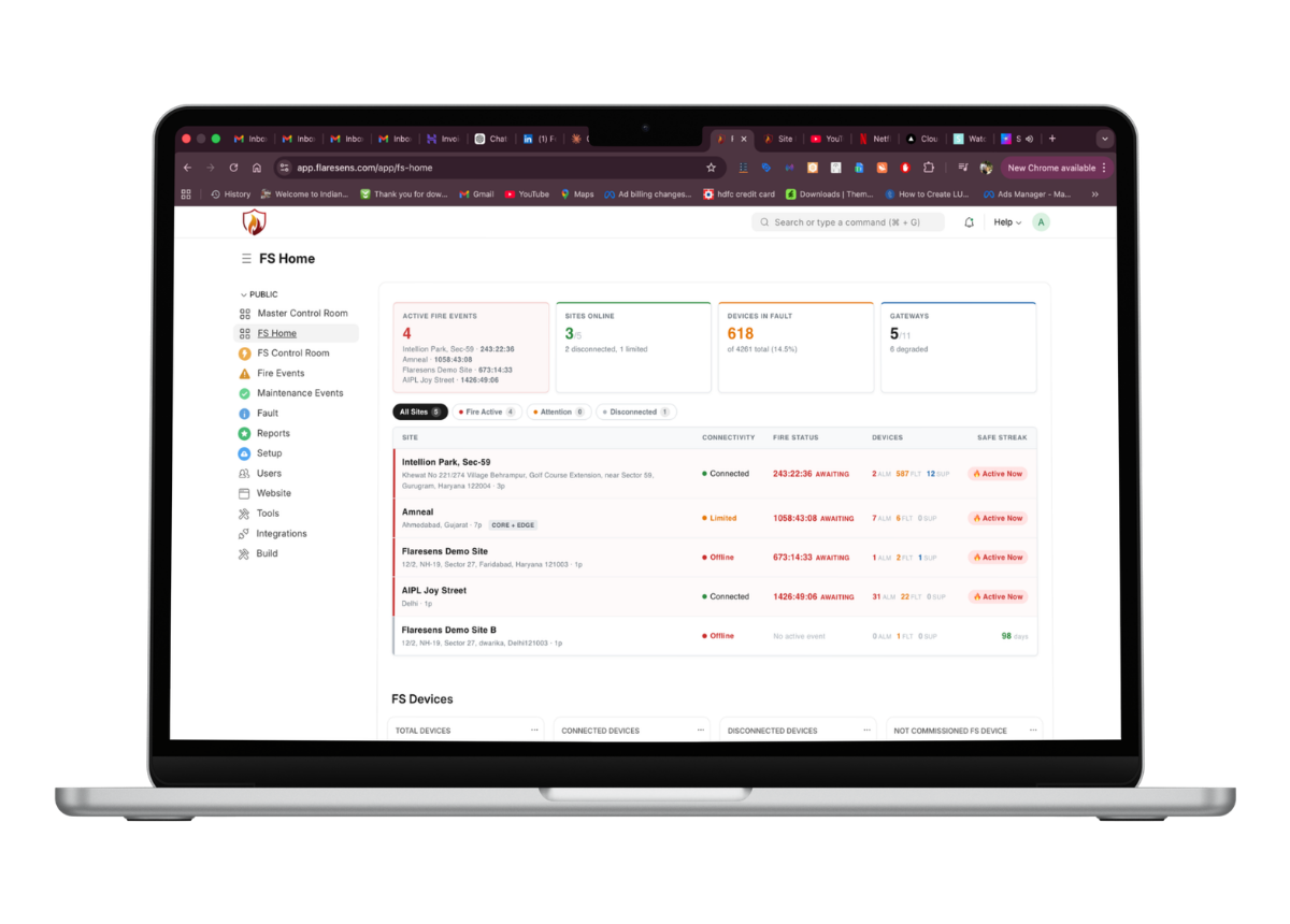 Enterprise campuses, real estate portfolios, industrial groups, retail chains, hospital networks, and any organization managing fire safety across multiple locations — with full fault analytics, sensor health tracking, and compliance reporting built in.